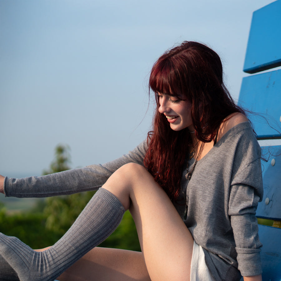 Hong Kong è una coccola per i tuoi piedi. Realizzato in 100% fine Cashmere, è una calza alta a coste che dona uno stile e un comfort incredibili ai tuoi outfit.