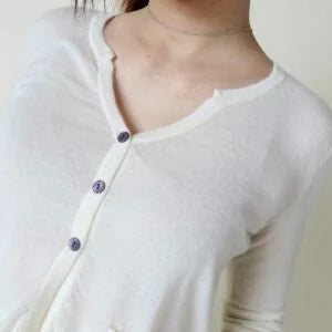 Completa ogni outfit con eleganza, perfetto da solo o indossato sopra un top. Questo cardigan corto in 100% fine cashmere ha scollo a V, una chiusura con tre bottoni e due taschini.